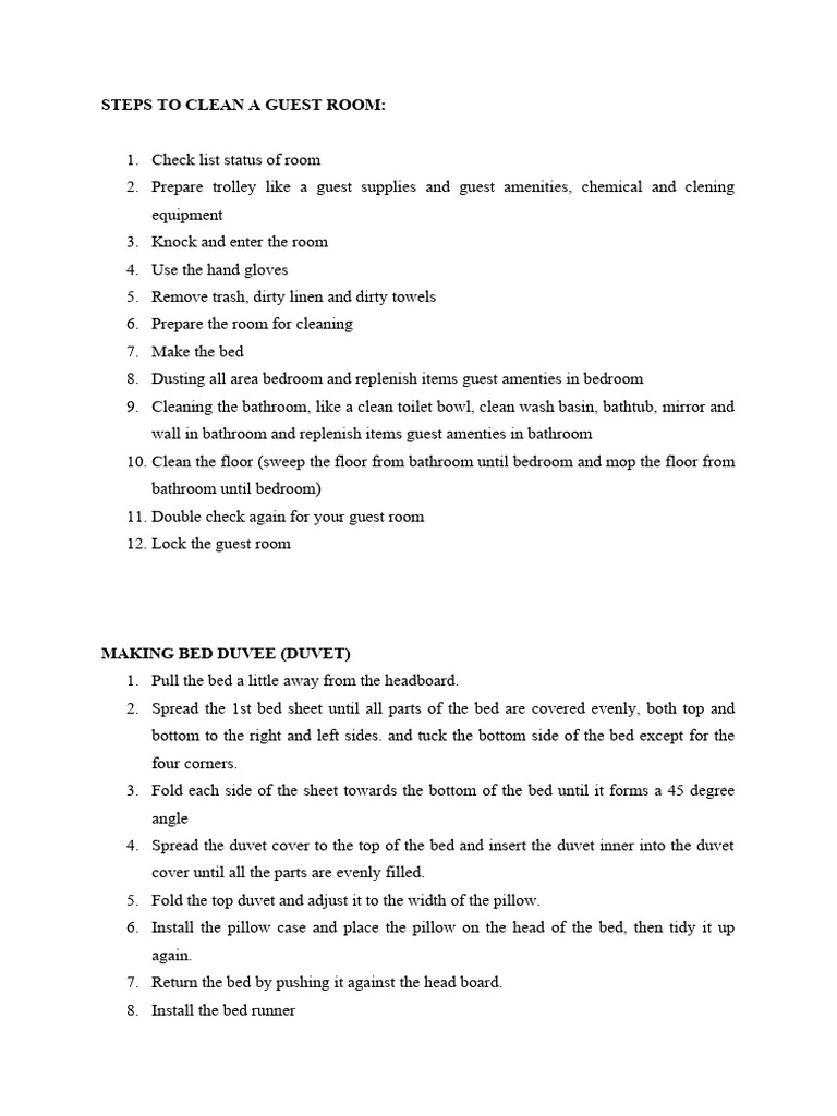 Steps To Clean A Guest Room PDF